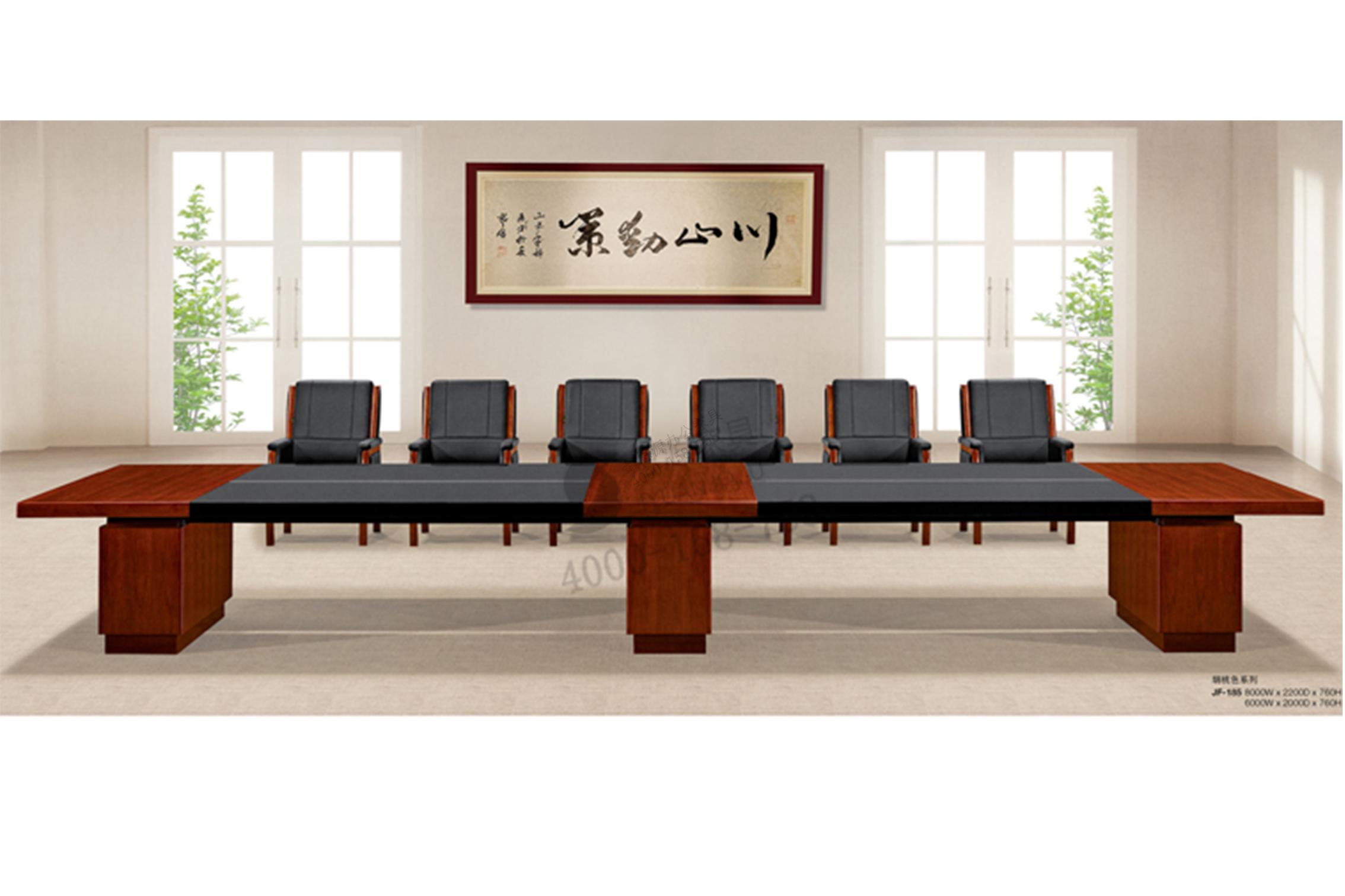 會議桌椅系列會議桌,是常見的現代辦公用品。一般選用實木噴漆,進口的櫻桃木皮做飾面,采用環保基材,進口PU類高檔聚酯漆,進口優質五金件。
